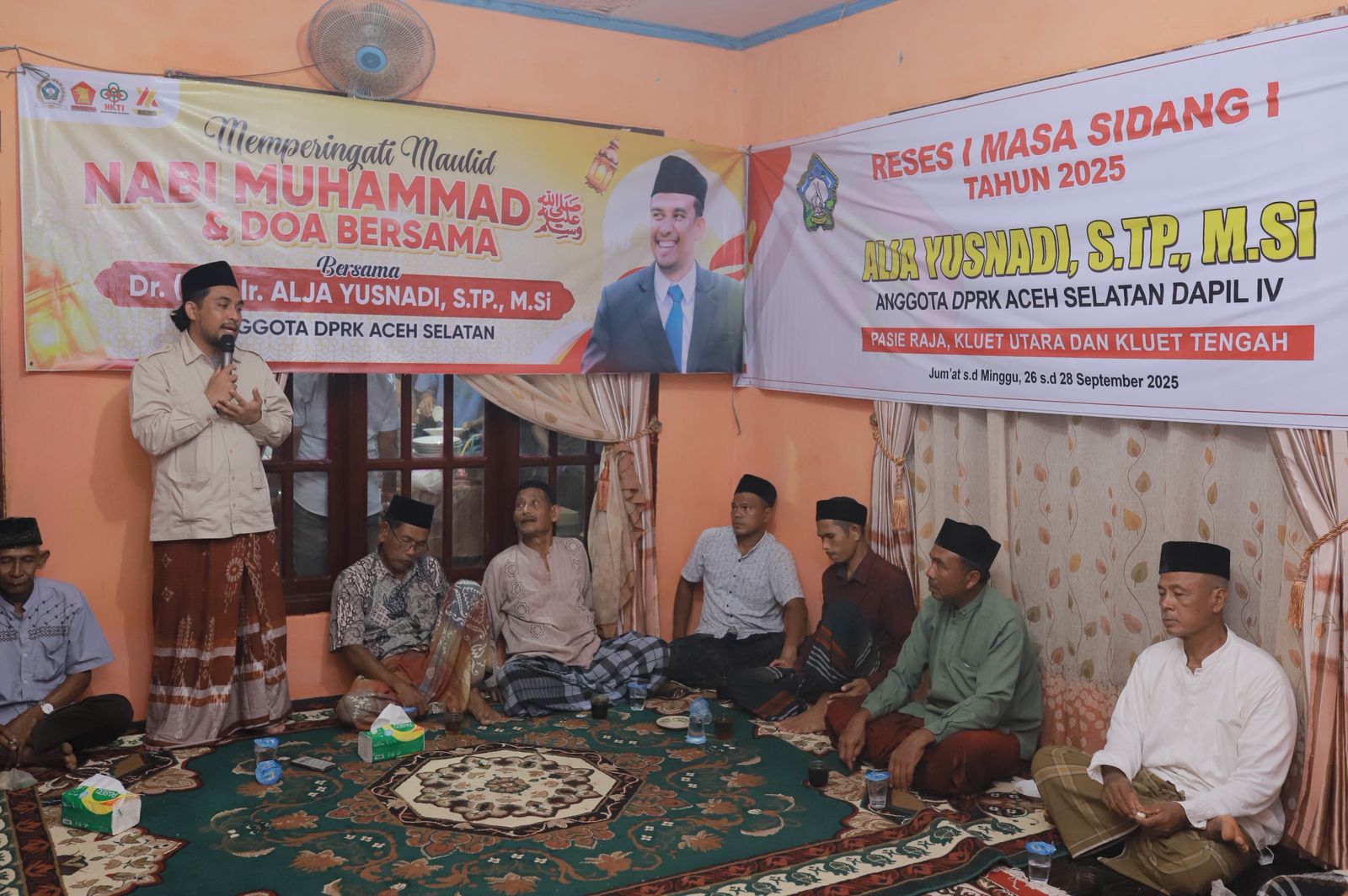 ASPIRATIF.ID — Anggota DPRK Aceh Selatan Dr (Cand) Ir.Alja Yusnadi,S.TP, M.Si mengatakan DPRK merupakan sarana untuk berjuang dalam rangka mengabdi kepada masyarakat. Hal tersebut disampaikan legislator Partai Gerindra itu saat memperingati Maulid Nabi Muhammad SAW di Gampong Ladang Teungoh, Sabtu malam, 27 September 2025.